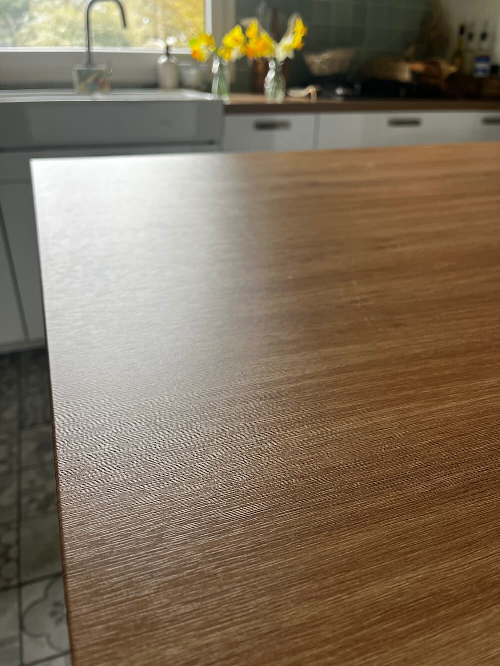 Nous sommes ravis de vous présenter notre dernier projet ! Nous avons aidé un client à transformer sa maison en installant des films DINOC imitation bois sur ses portes et sur l’îlot central de sa cuisine. Cette solution astucieuse et économique a donné une nouvelle vie à ses meubles et portes sans qu’il ait besoin de les remplacer.